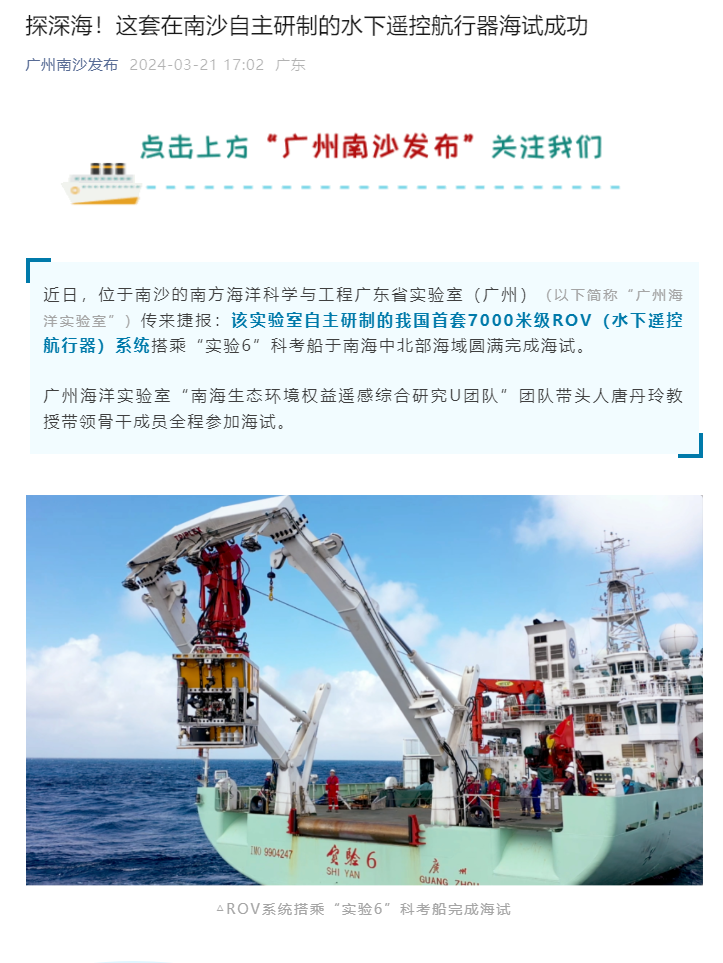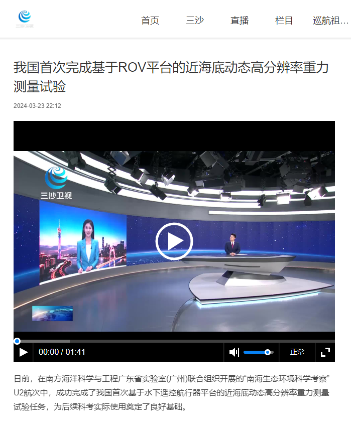 科学网、中国科学报 、海洋知圈、广州南沙发布、三沙卫视:我国首次完成近海底动态高分辨率重力测量试验