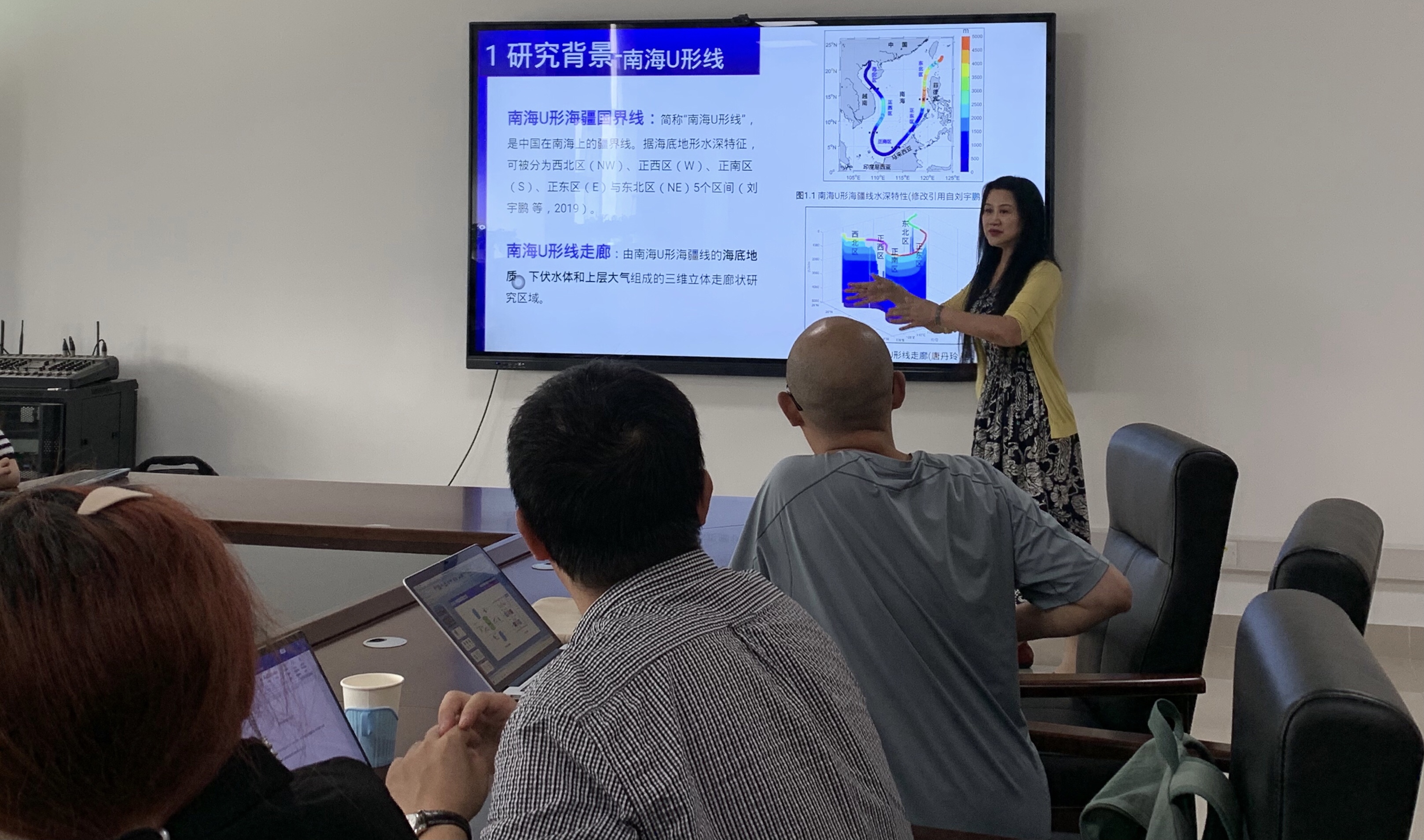 唐丹玲团队、中科院南海海洋研究所研究生刘旺作了“南海U形海疆线走廊的文献计量学分析与潜热通量的时空分布特征研究”报告。与会专家认为,该研究具有创新性和前沿性,具有重大科学意义。