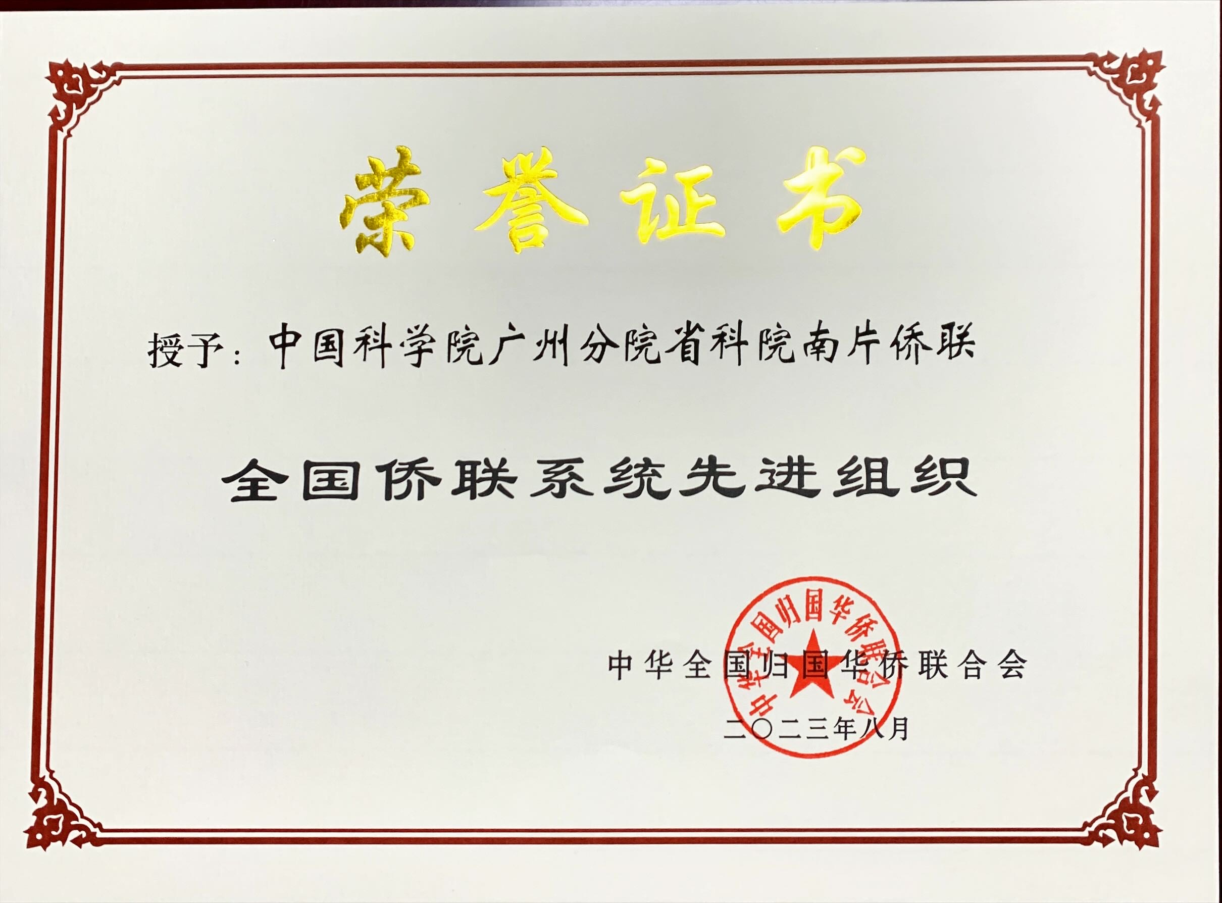 8月31日,备受广大归侨侨眷和海外侨胞瞩目的第十一次全国归侨侨眷代表大会在北京开幕。会上公布了人力资源和社会保障部、中国侨联、国务院侨办有关表彰决定,并为获奖单位和个人颁奖。其中,中国科学院广州分院省科院南片侨联(简称中科广侨)获评"全国侨联系统先进组织”。