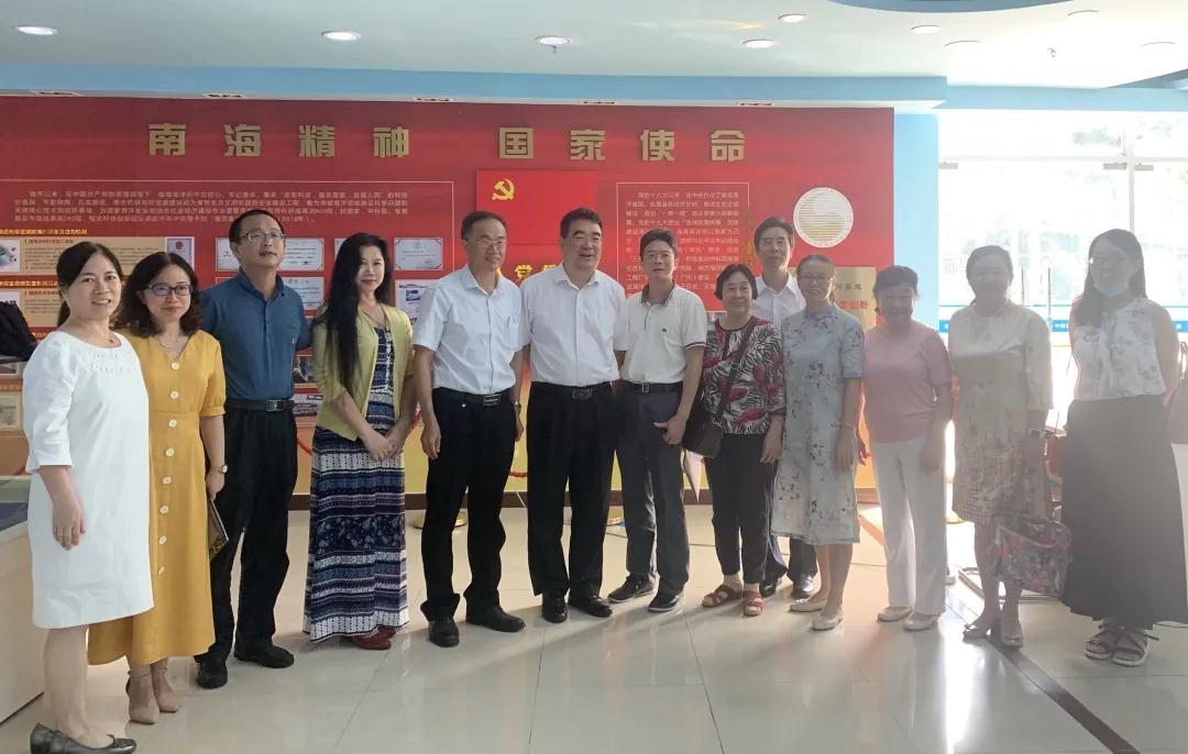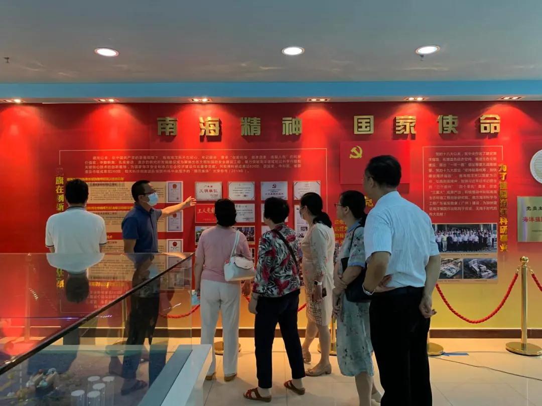 在南片侨联主席唐丹玲博士的陪同下,来访团参观了海洋生物标本馆和“海洋强国、探索创新”党员主题教育基地。南海海洋研究所党办黄林丛主任讲解了南海所的发展历程和近年来取得的相应成果,及未来发展的宏观示意图。