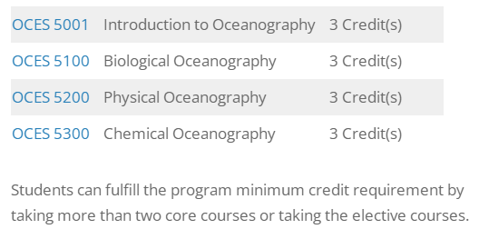 (12 credits from core and/or elective courses + 4 credits from OCES 6011 -